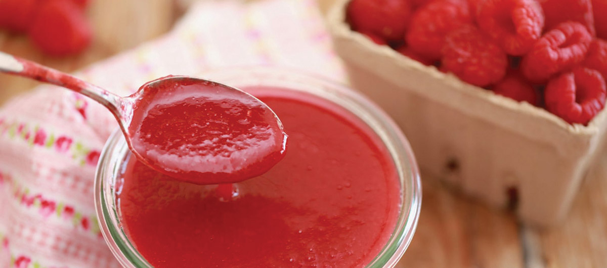Combine frozen raspberries and hot syrup in a blender con- tainer. Blend until the mixture is smooth and pureed.